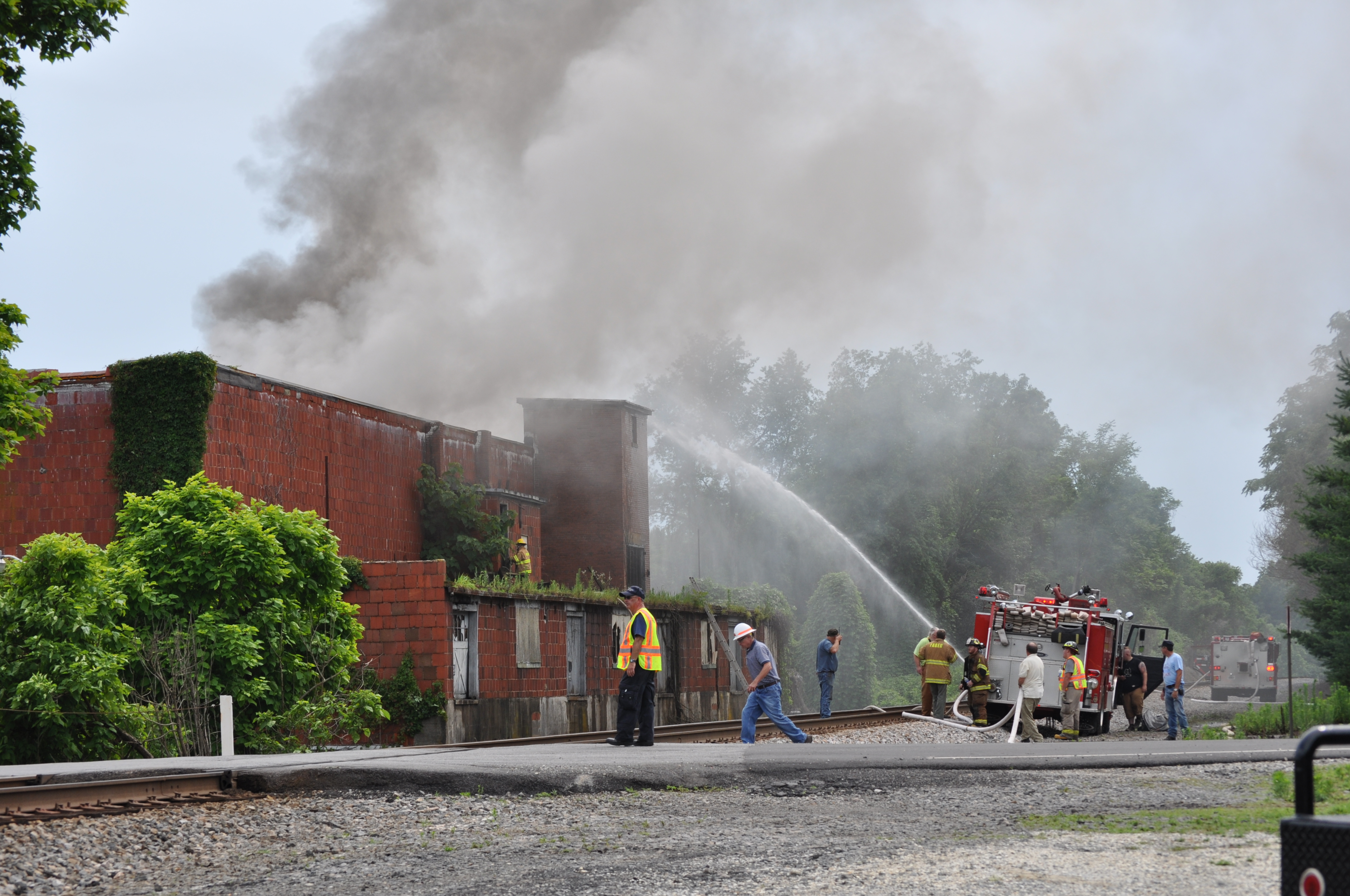 Strong storms moved through Shipman Friday afternoon with thunder and lightening. Joyce and Jack (of Shipman Auto, a business right beside the track), believe that the blaze ignited from a lightening bolt. They said they heard the lightening stroke the ground and felt it shake their shop, which is located just a few hundred yards from the building that caught fire. It took at least three fire trucks with fire fighters to battle the blaze.