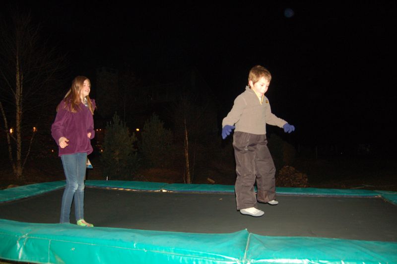 ©™2013 Delaney Stone (L) and Cole Chambers, of the Beech Grove Community braved 40° temps and some occasionally breezy conditions as they Bounced for Turkeys Tuesday night – November 19, 2013. The annual event held at Devils Backbone Brewing helps raise money to buy turkeys for the Nelson Pantry during the holidays.