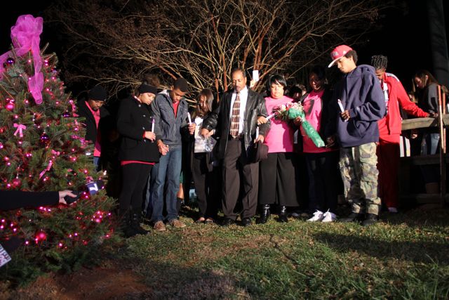 The grieving crowd congregates for the lighting of the tree dedicated to the missing 17-year-old, Alexis Murphy this past Tuesday night – December 3, 2013Hands are held, bonding the crowd together in strength, dedication, and prayer.
