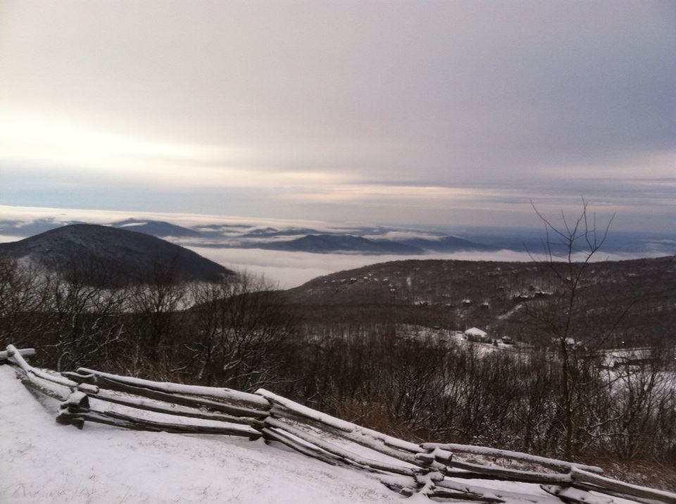 Photo Courtesy of Kimberly Dawn : Light snow fell overnight across much of Central Virginia. This is a shot taken by Kim Dawn walking up to Devils Knob at Wintergreen Resort on Saturday morning – December 14, 2013.