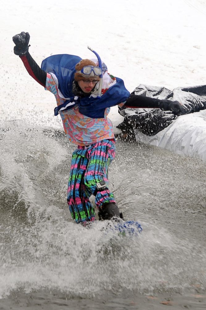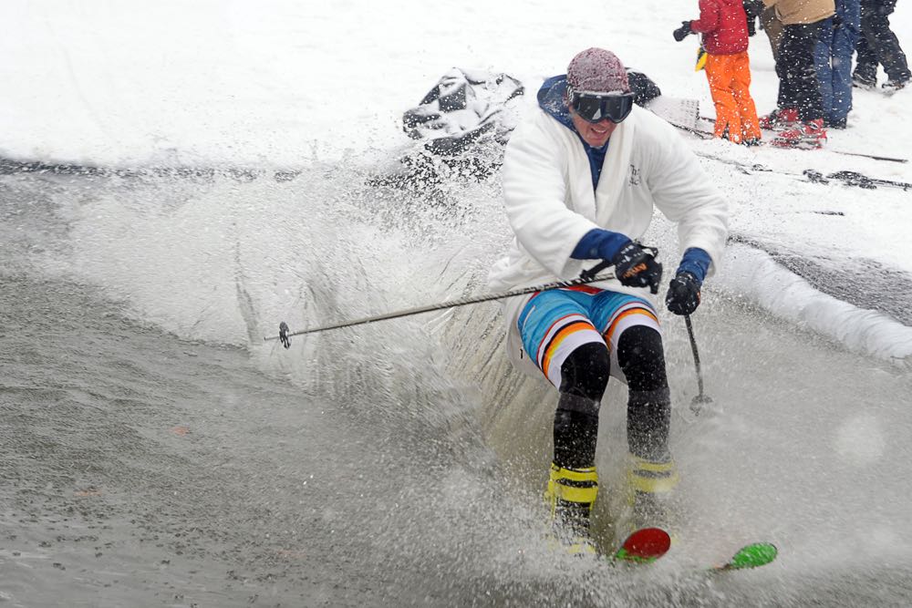 Spring arrived early Sunday morning at 12:30 EDT, just in time for the folks at Wintergreen Resort to close out the ski season with their annual Splash & Dash (known as Pond Skimming to the veterans). The event is held each year around this time as a fun way to move into the warmer days ahead. The 2016 event had a record 62 contestants, and yes, some of them made it across!