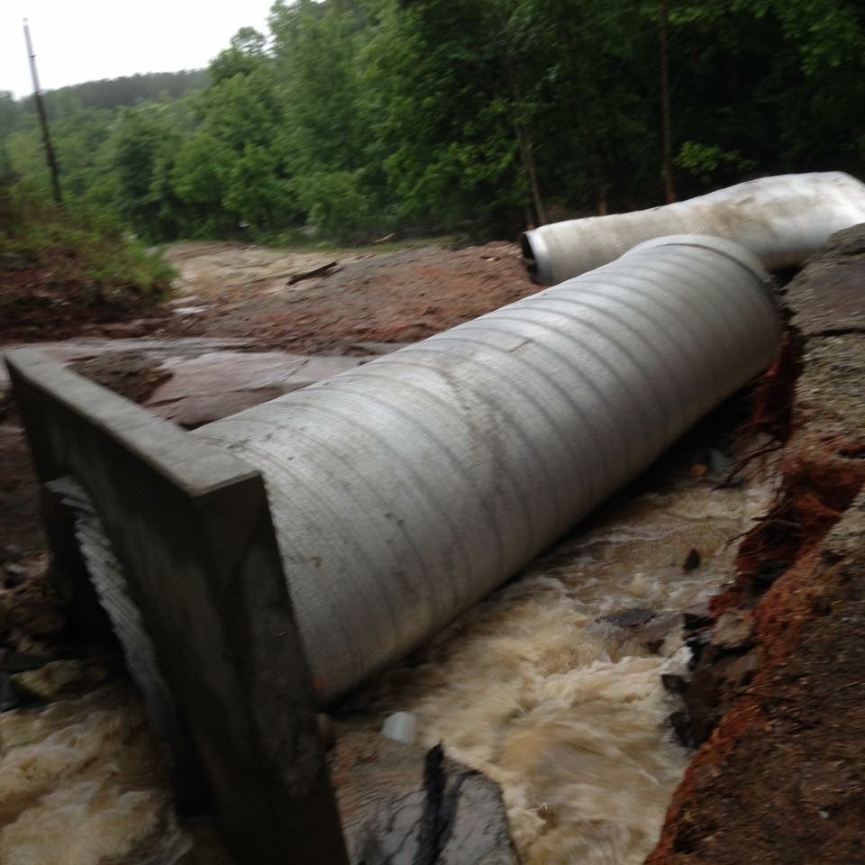 For the second time in five days torrential rains have fallen across the area taking our culverts, blocking roads, downing tree and causing power outages.One of the first photos we got in Sunday morning was from Dark Hollow Road in South Nelson County. About 3/4 of a mile of off the East Branch Loop side the road has been completely washed out after culverts were blown out from the massive rains.
