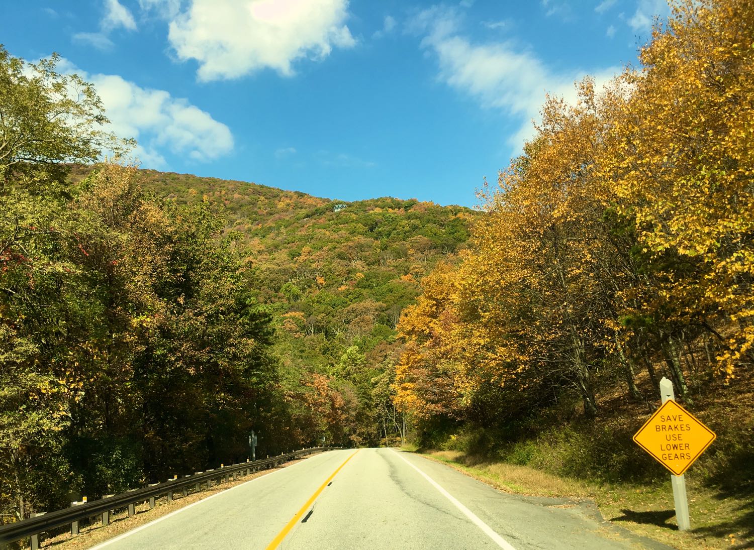 Heading down the mountain from Wintergreen Resort toward the gatehouse.