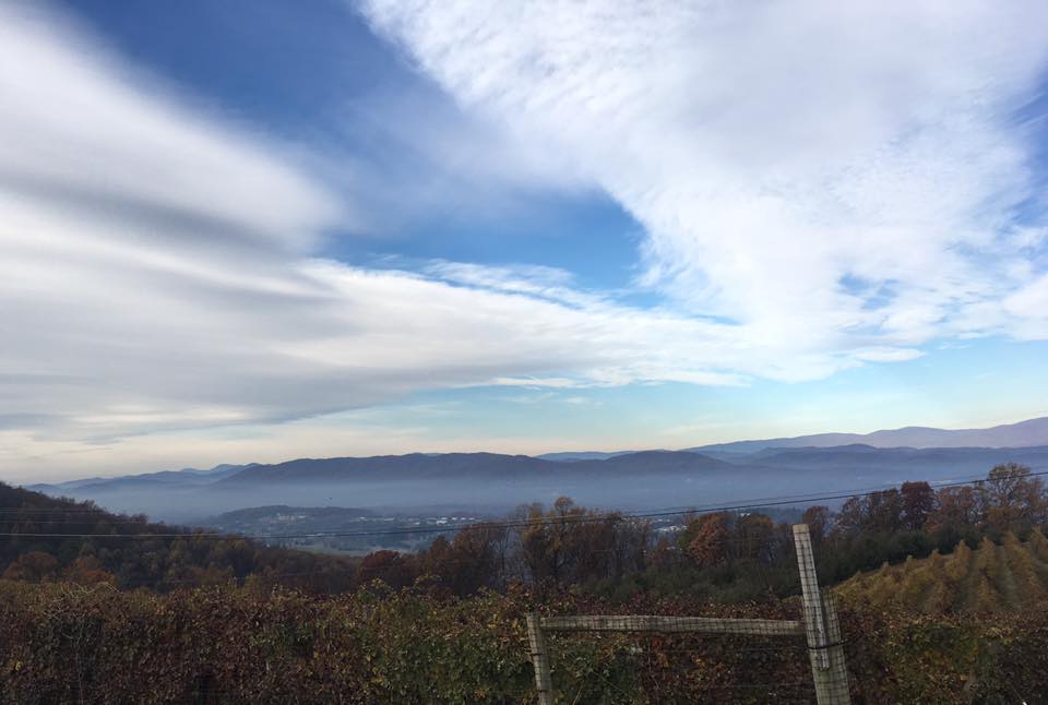 Photo Courtesy of Frank Wood : Fire continues burning on the mountainside above St. Mary’s Catholic Church just north of Lovingston around noon Tuesday – November 22, 2016. The fire originally started on the other side in Eades Hollow on Sunday night – November 20, 2016