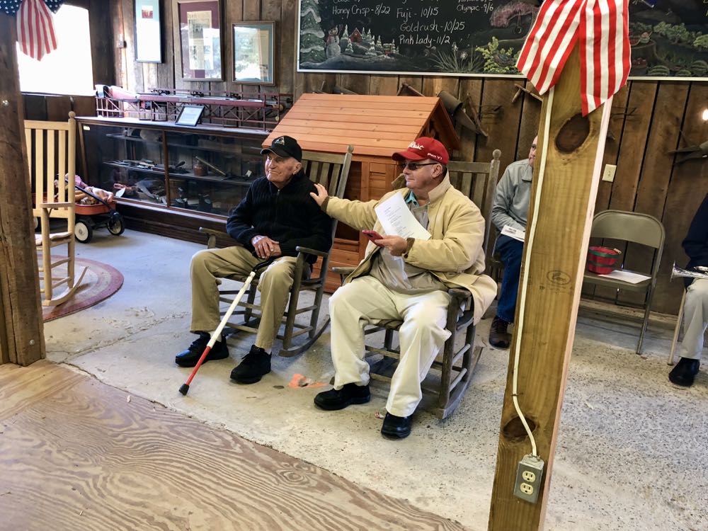 Veterans and members of the community alike sat inside the frigid Saunders Brothers Farm Market barn to pay tribute to those who have fought and fallen for our country. Many scarves, jackets and blankets were removed and placed upon our present veterans to warm their hands and hearts. Memories were shared, stories were told, history was acknowledged.