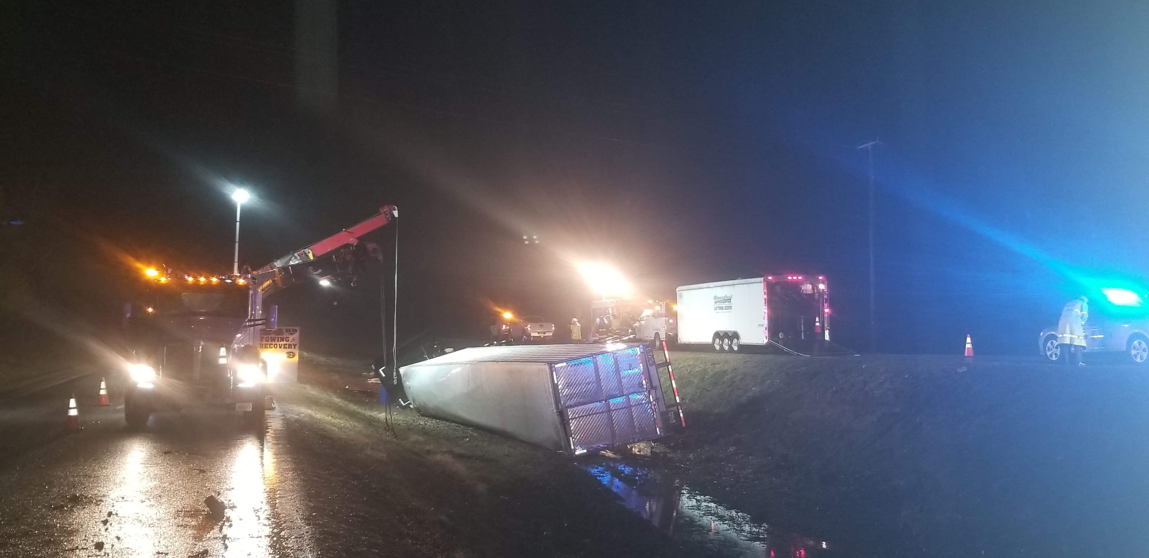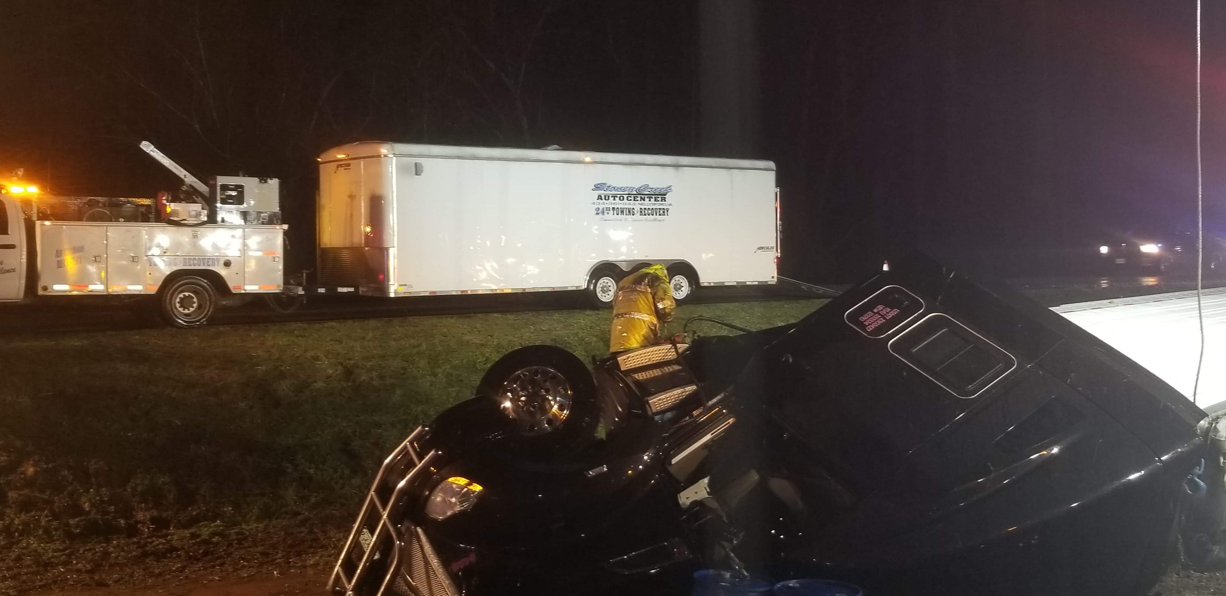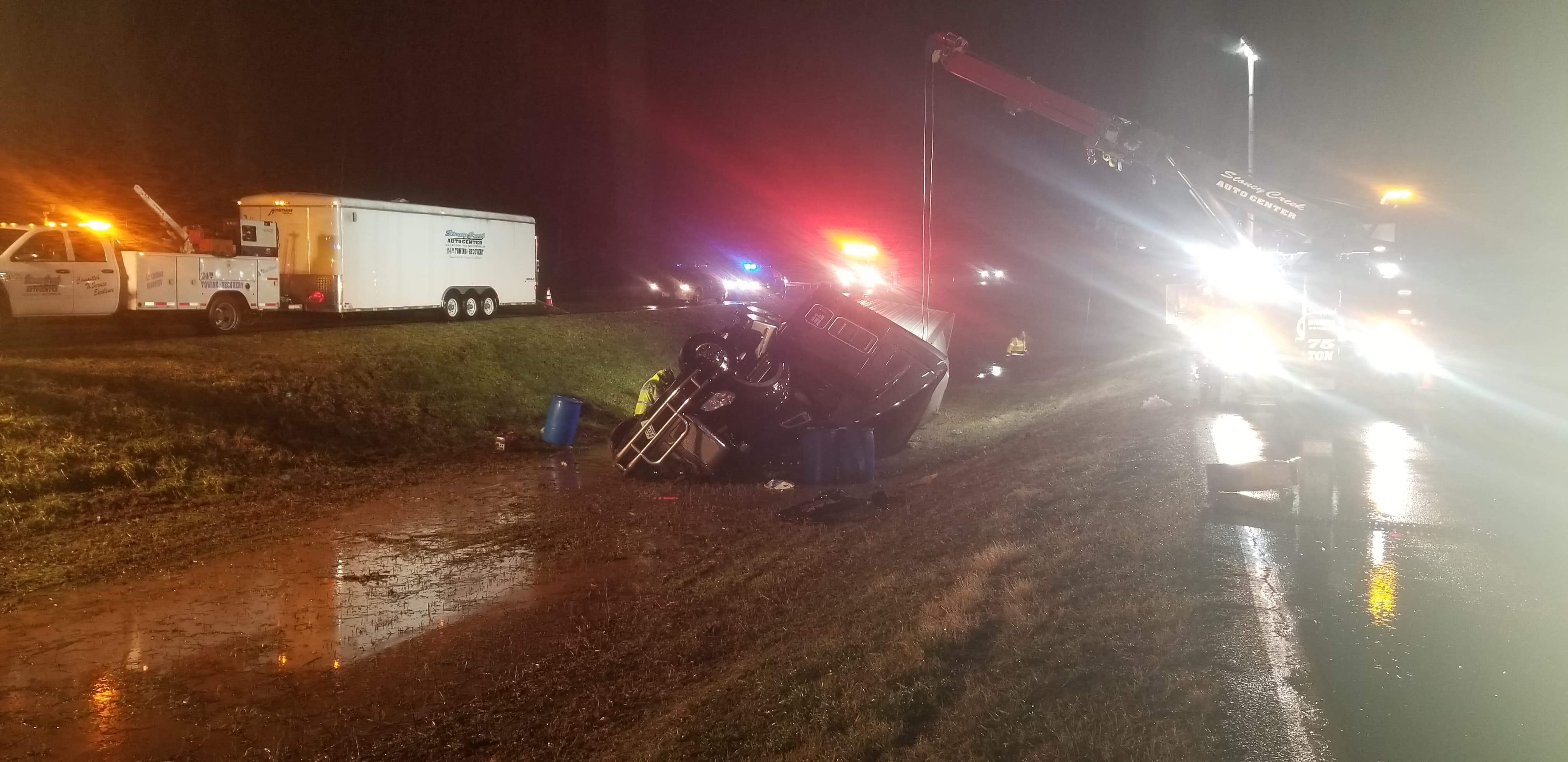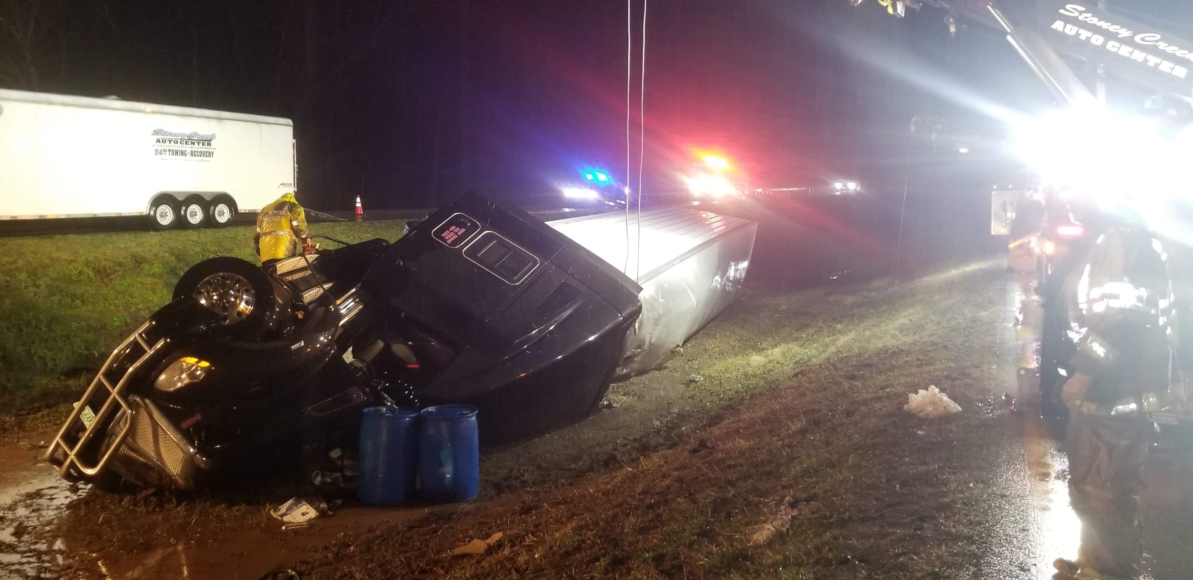 Photo By Corey Morse : This tractor trailer that flipped on US Route 29 north of Lovingston on Friday morning has partially blocked the roadway.North of Lovingston