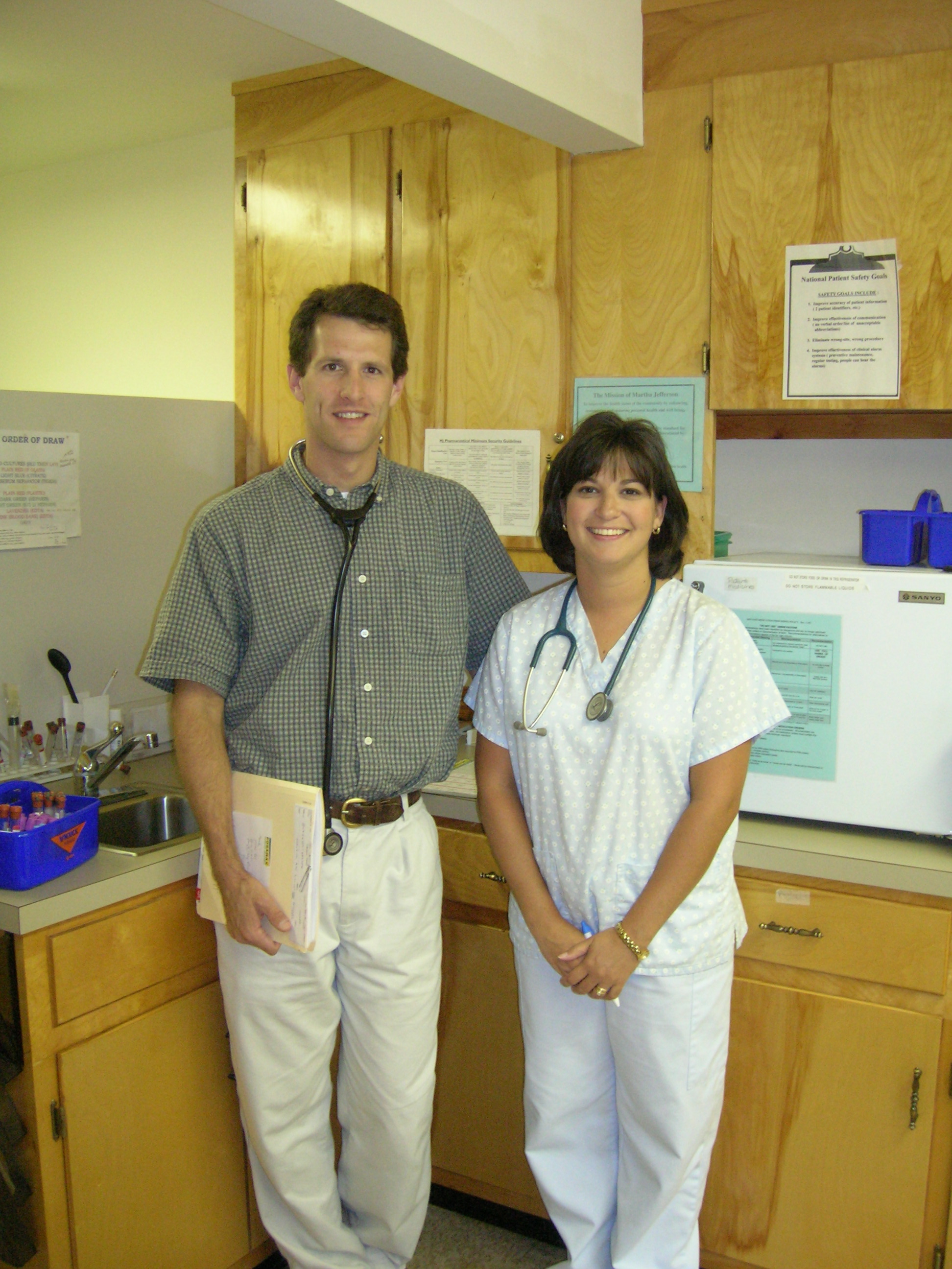 Dr. Steve Schmitz left with Mandy Baker, RN at the old Afton Family Medicine Clinic back in September 2005. Mandy is still with the clinic today.