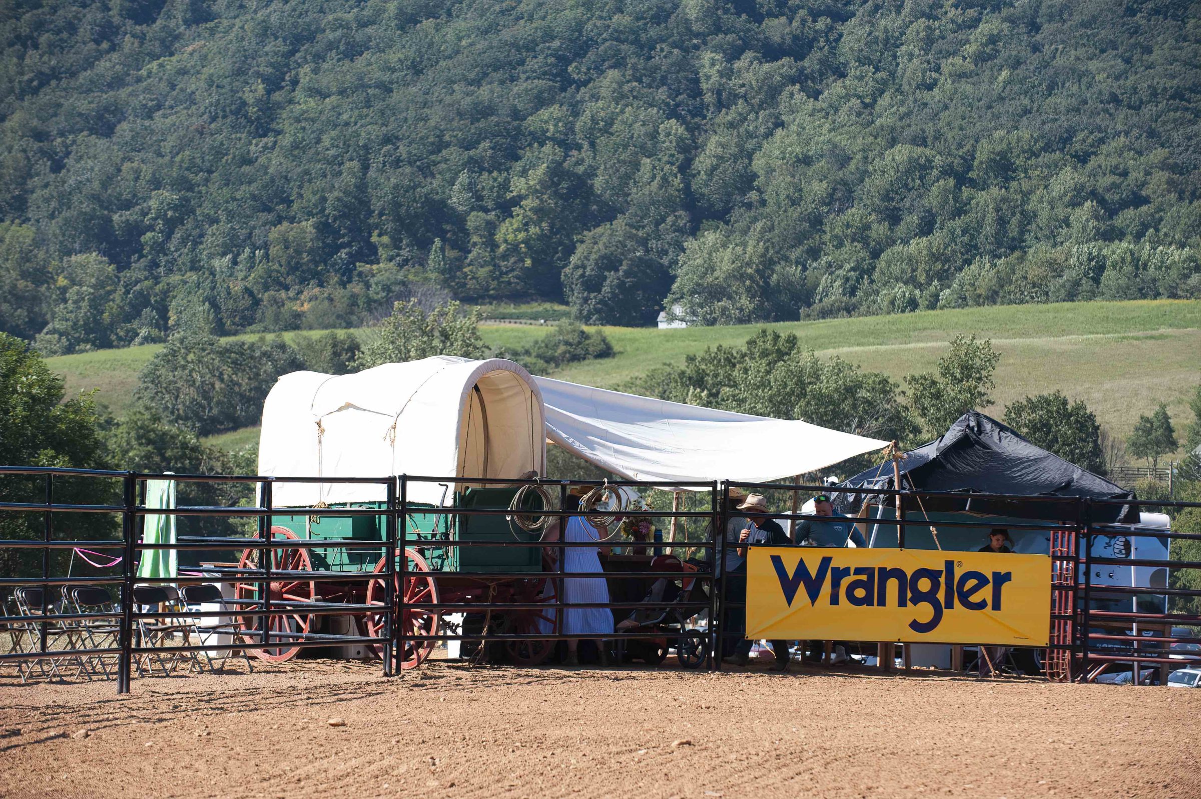 A covered wagon scene from the Rockfish River Rodeo in Beech Grove / Roseland in Nelson County, VA – Saturday – September 2, 2023