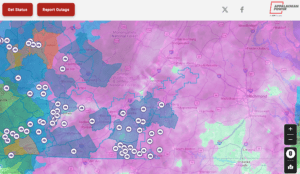 Central Virginia Electric Co-op had less than 50 outages reported just before noon Sunday just northwest of Appomattox, Virginia. CVEC live outage map can be found here.
