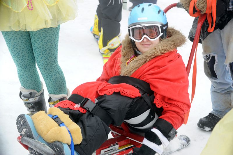The Mardi Gras Celebration is held for everyone: disabled students, volunteers, friends, families and anyone who wants to support the worthwhile cause with a donation.Some of the wackiest costumes were on display at WAS's 2011 Mardi Gras.It is a day and night of costumed foolery, starting on the slopes at Wintergreen in the morning.The day long event winds up in the evening with the one and only Thrift Store Formal.They strut their stuff down the mountain with a costume parade followed by gumbo for lunch on the WAS deck.The afternoon was filled with tubing races and the wildly competitive, utterly silly Synchronized Ski Contest.In the evening they are dressed to the nines in their choicest thrift store finery.The special event is in honor of the first student of WAS, Vince Fiore. He was an avid skier, and the fact that he had only one leg did not dampen his enthusiasm for fast skiing!The funds raised on Saturday are a major source of the money needed to purchase and repair adaptive equipment.Other funds raised are used for for instructor training and overall administration of the WAS program.